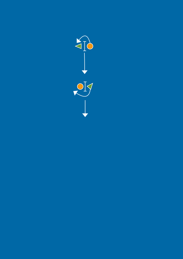 Anfallaren slår en sidspärr på försvararen med ryggen. Försvararen går runt anfallaren framför eller bakom och tränger sig samtidigt genom en lätt armrörelse förbi anfallsspelaren. Anfallaren varierar genom att spärra på båda sidor om försvararen.
