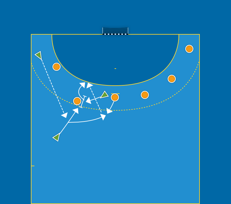 Syftet är att hjälpa niometersspelaren till genombrott eller skott samt själv falla ner i luckan och få inspel.