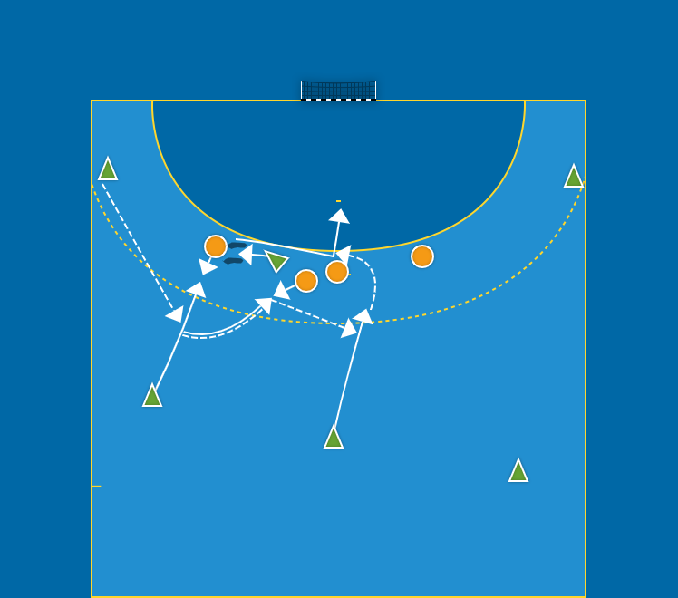 Rullning mot 6–0-försvar, M6 i pos. 2 med bollvändning, personlig vändning och bred vändning övning 2
