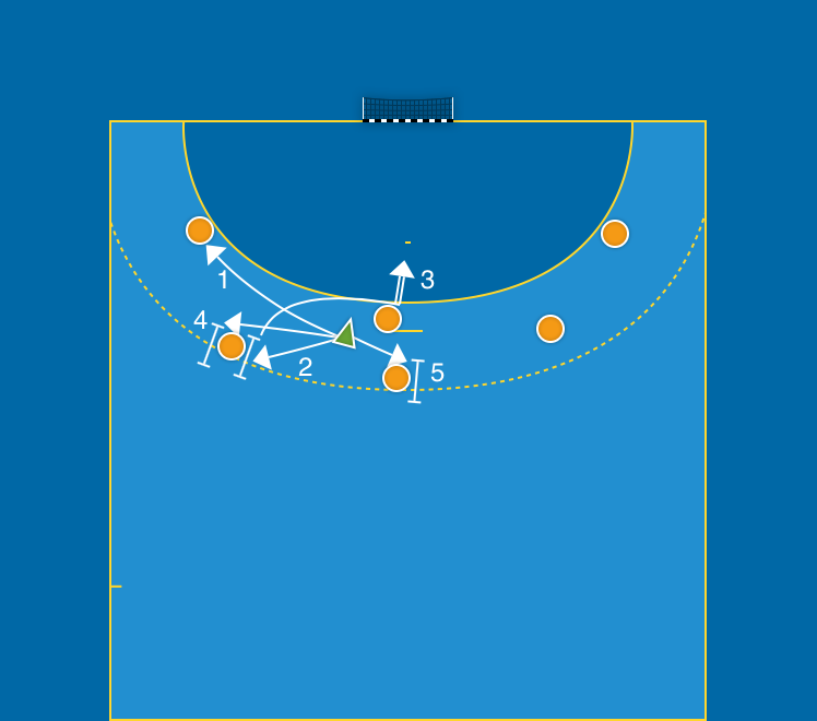 Rullning mot 3–2–1-försvar M6 i pos. 2 med personlig vändning och bred vändning övning 1