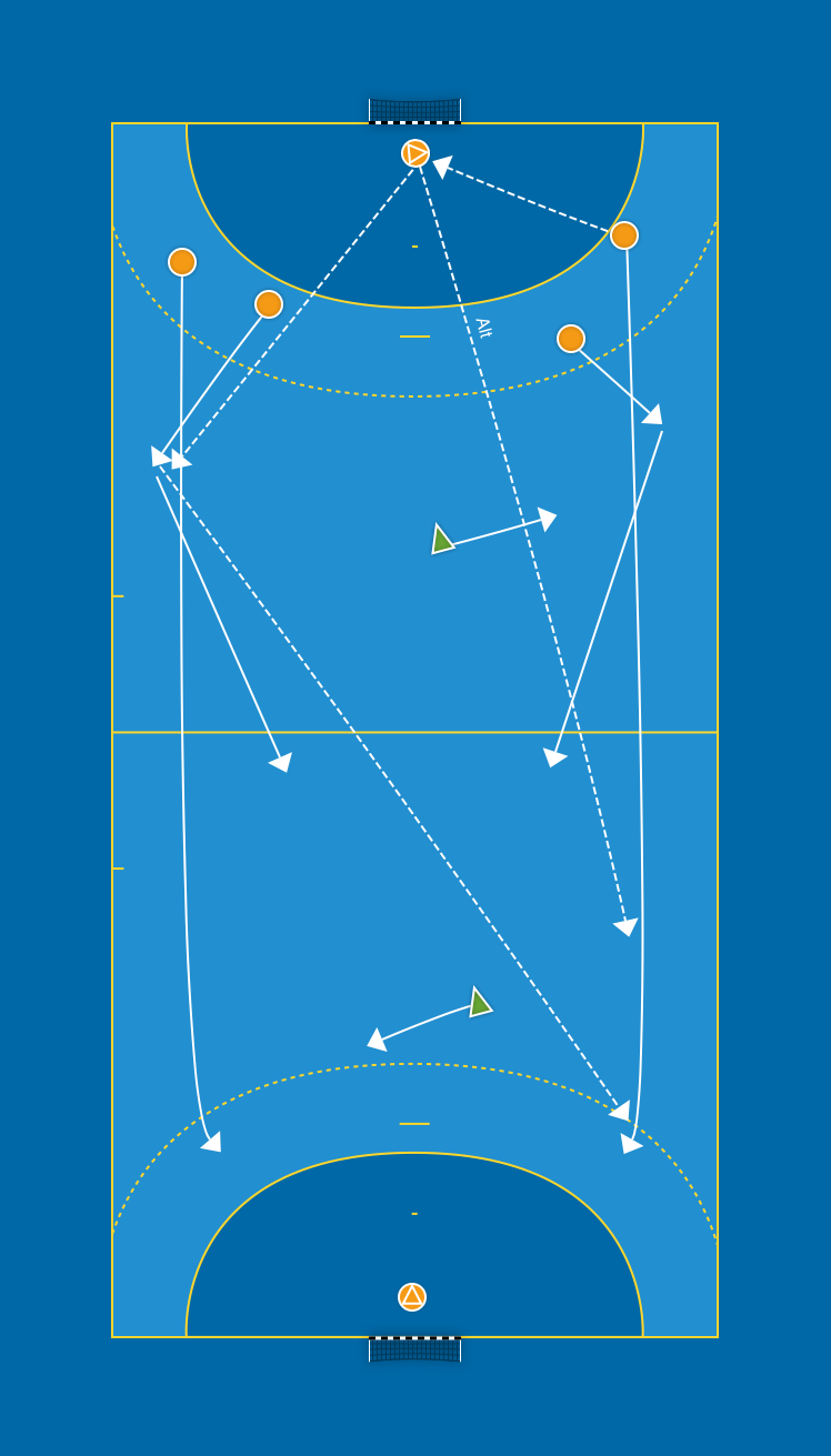 Korta uppspel vid returtagningarna som förlänger / skär igenom till fas 1-spelarna.