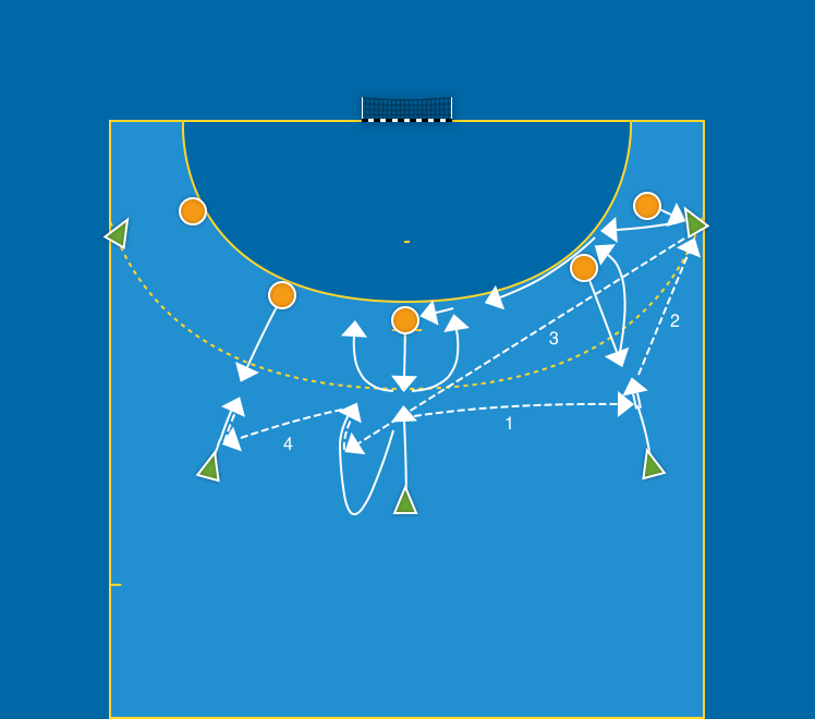En boll, fem anfallare mot fem försvarare.