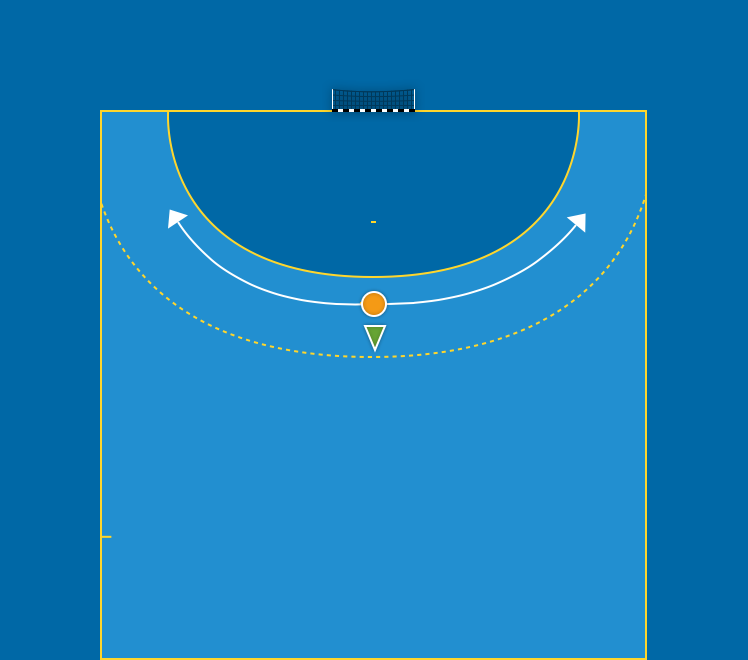 1. CH förflyttar sig med bollen och löper mycket. CH ska helst befinna sig mellan bollen och målet, och bör röra sig bakom M6:ans förflytt- ningar eftersom det är svårare att ha kontroll på M6 bakom sig än framför sig. Vid själva in- spelsögonblicket till M6 ska CH självklart arbeta runt och slå bort inspelet till M6.