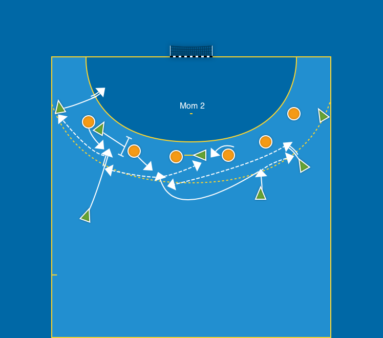 7 mot 6 mot 6-0-försvar med M6 i pos. 1 och 4, Mom 2