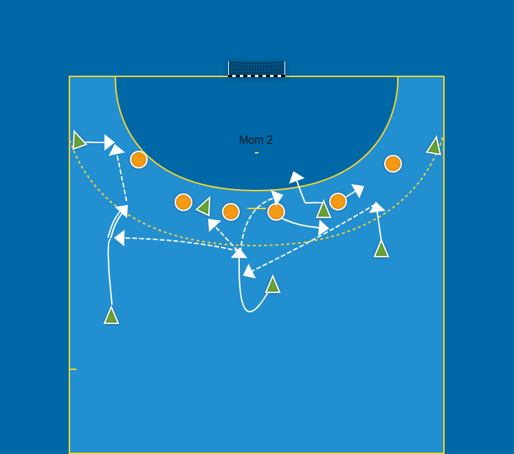 - H9 skott eller genombrott mellan V2 och V1 eller utspel till H6, eller vändning tillbaka till M9