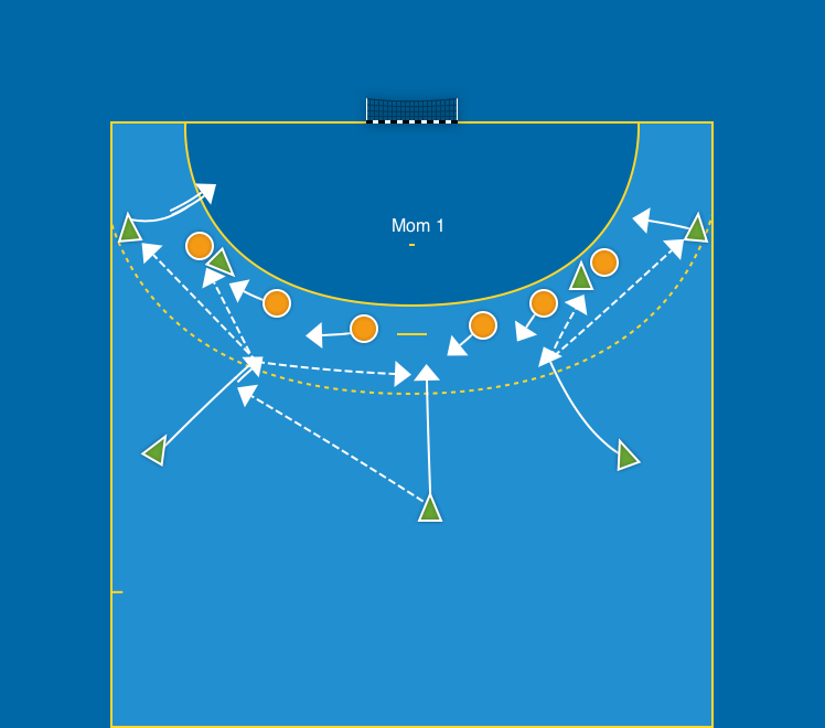 7 mot 6 mot 6-0-försvar med M6 i pos. 1 och 5, mom 1