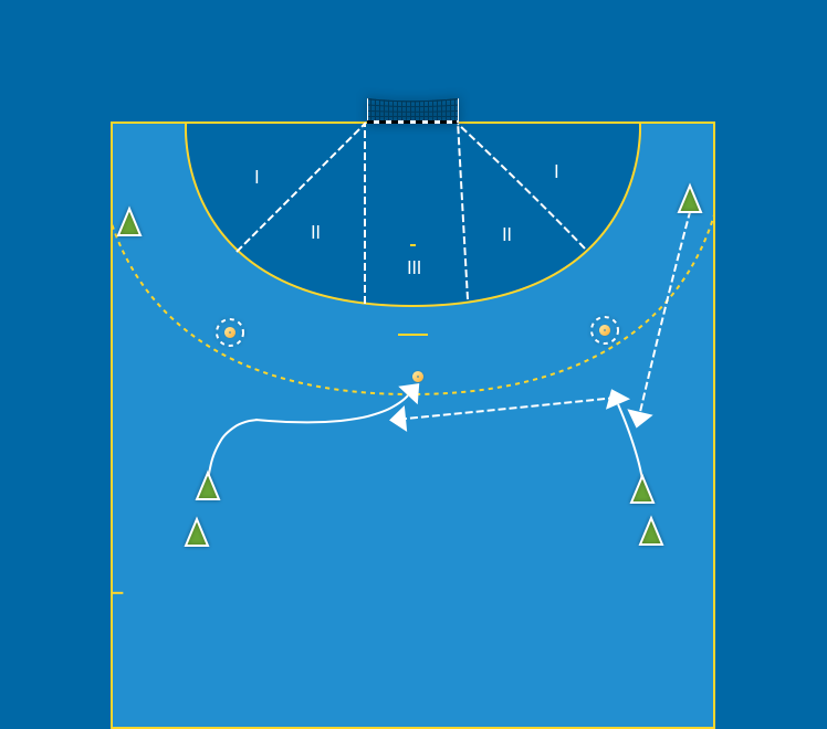Niometersrörelse över zon utan boll, skott i zon 3. Skottuppbackningar från motsatt 9:a.