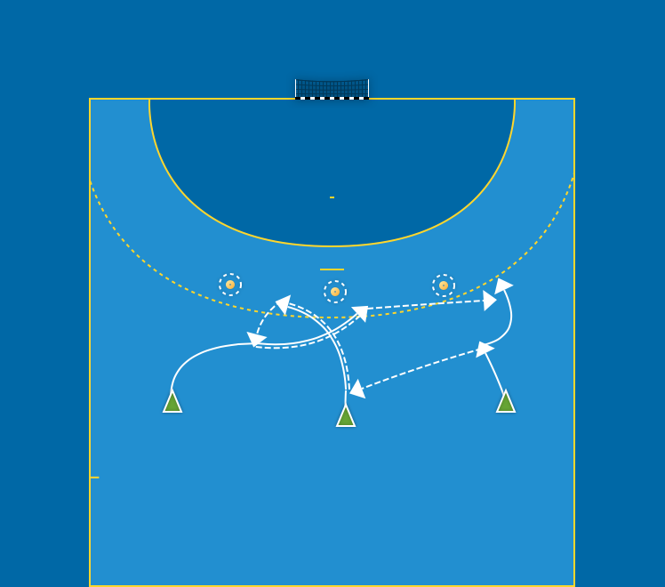 Samma som övning 1 men uppväxlande Y9 spelar vidare till motsatt Y9:a som kommer brett på avslut, skott, genombrott eller utspel.
