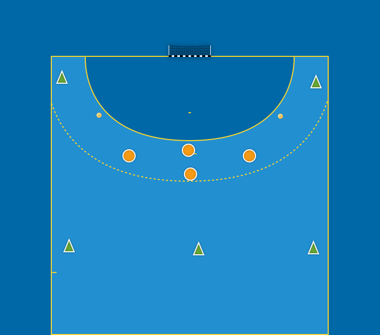 Tillämpningsövning. 5 mot 4 (3-2-1-försvar). Betona övningarna 1–5.