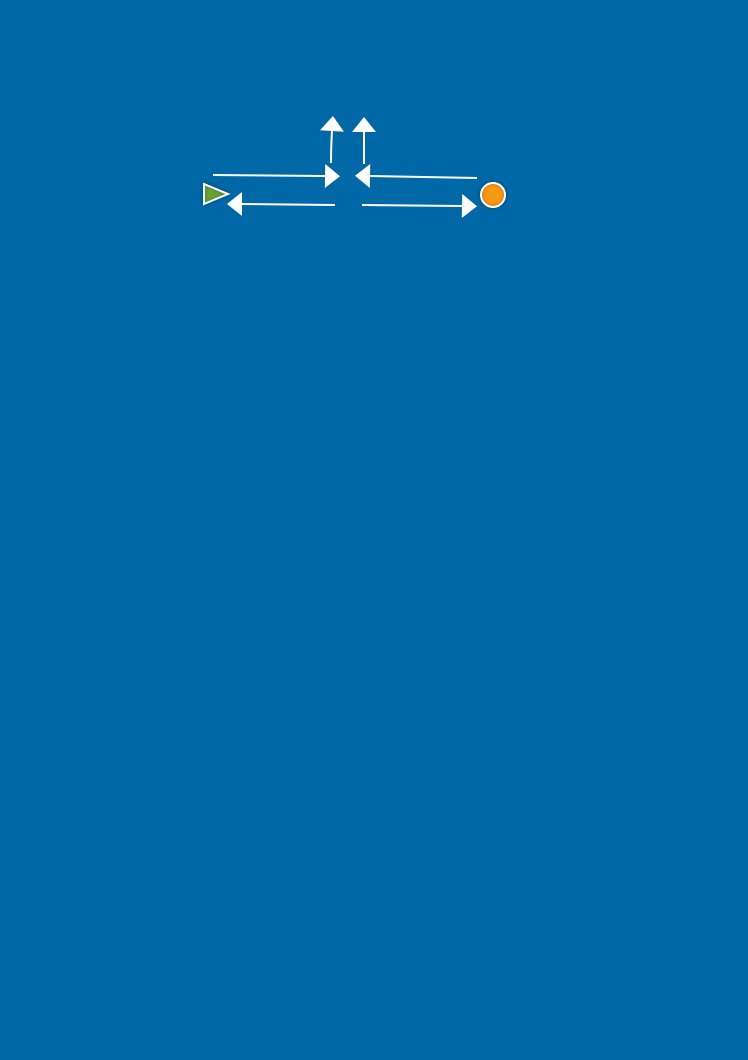 Anfallaren hoppskottssatsar med boll, försvararen stöter upp i fotarbetsrörelse framåt mot hoppskottet samt tacklar och låser i diagonalställning.