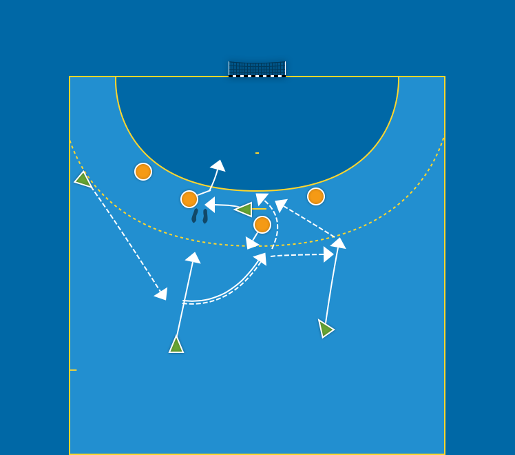 D2: Axel- och skulderspärr, motstöt på nio meter mot 6–0-försvar