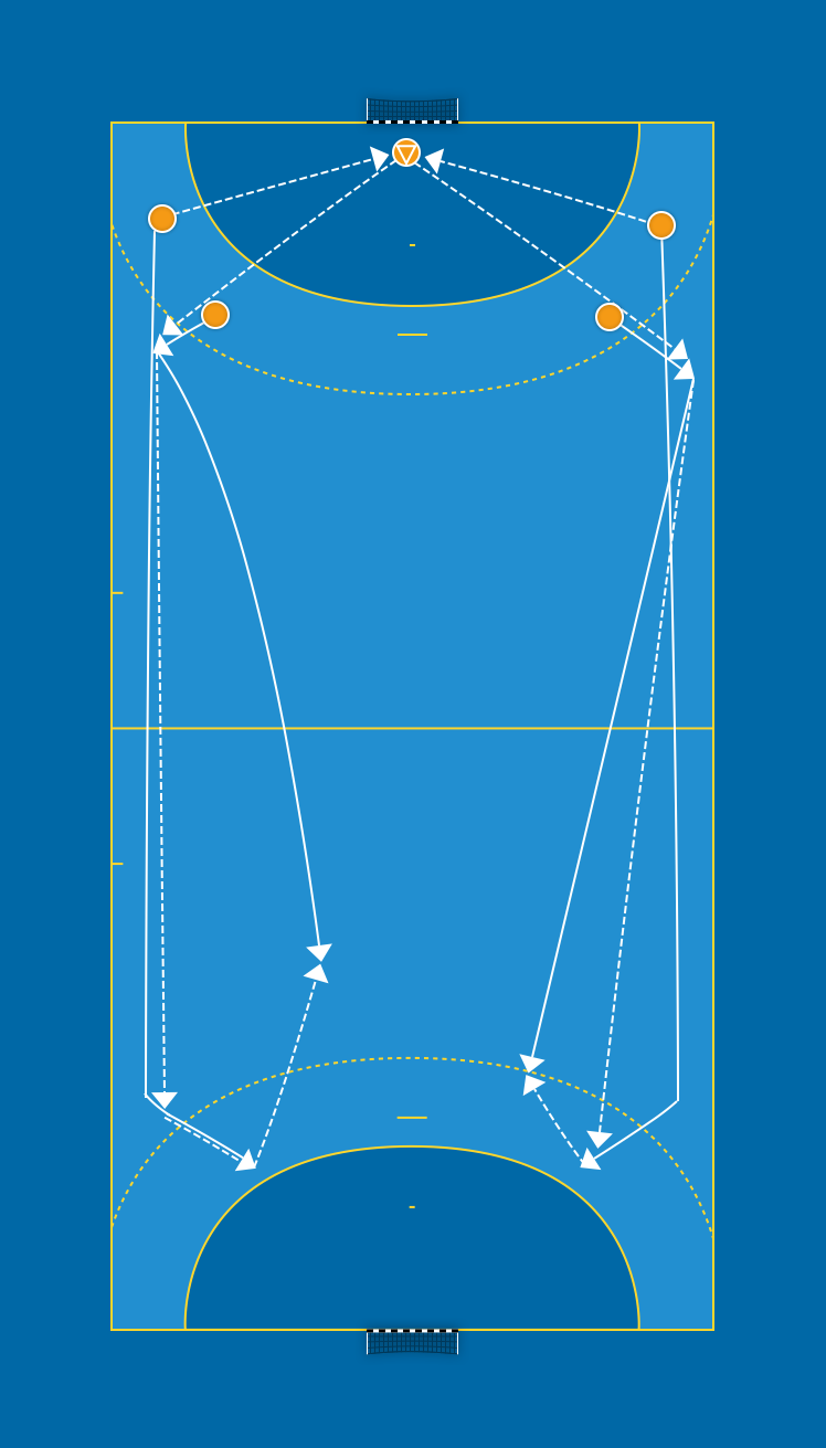 Samma som i övning 4 men med avslut och målvakt. Alternera mellan höger och vänster sida.