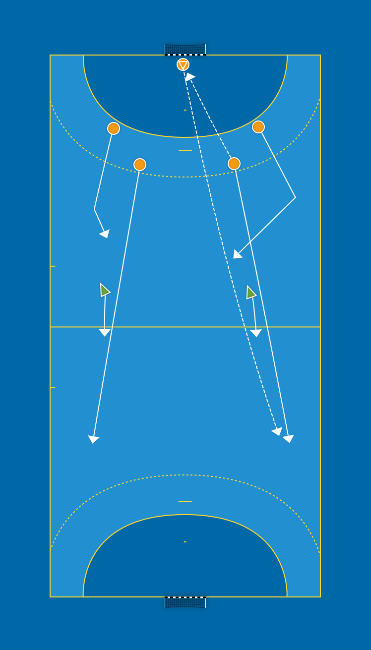 Samma som övning 1 men med en försvarare mitt på plan.
