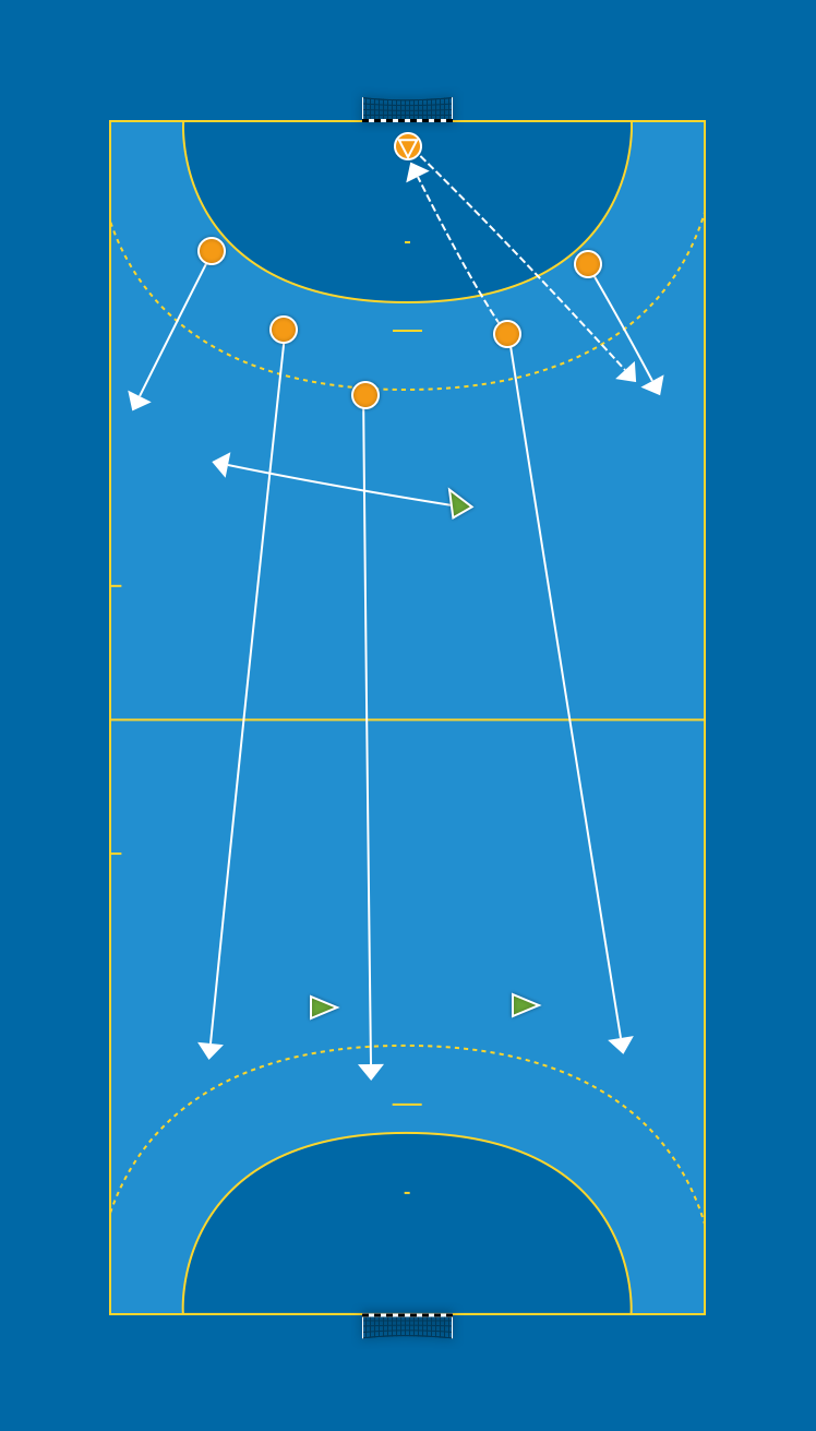Samma som i övning 5 men med en CF i stället för en CH. Två försvarare på bortre planhalva och en försvarare på egen planhalva.