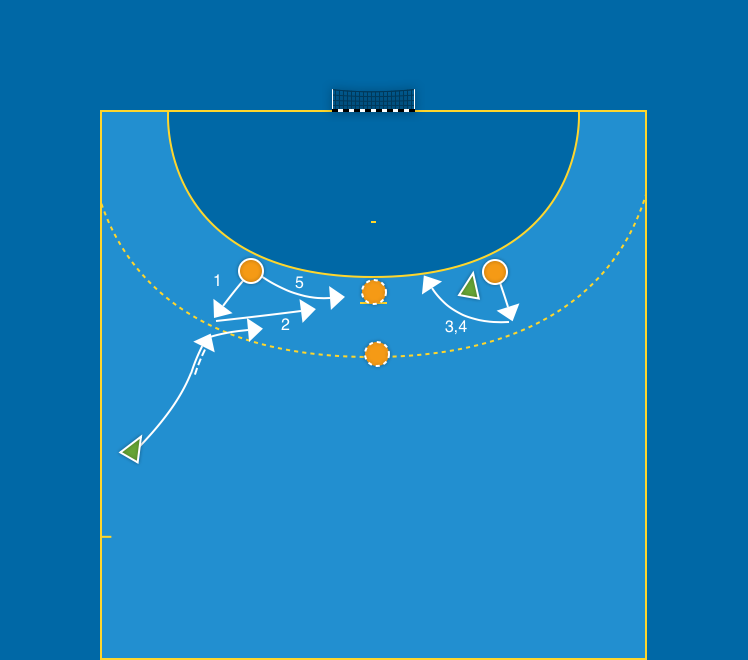 6. Stöta upp på 8–9 meter (ingen linjespelare i zon 2) om CH ropar ”fri!”
