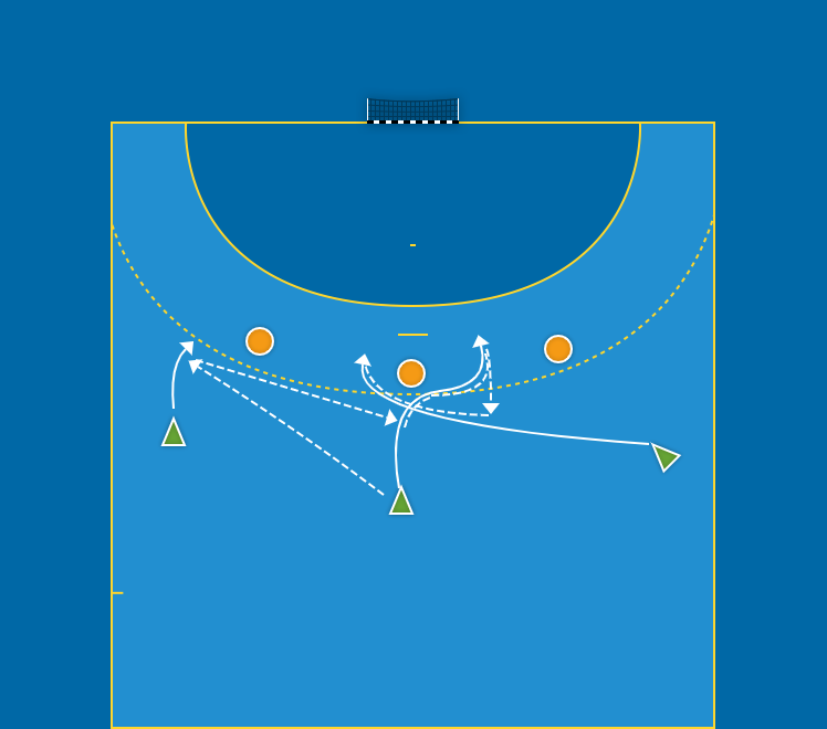 Samma som Övning 1 men med 3 försvarare. Alternera vänster och höger.