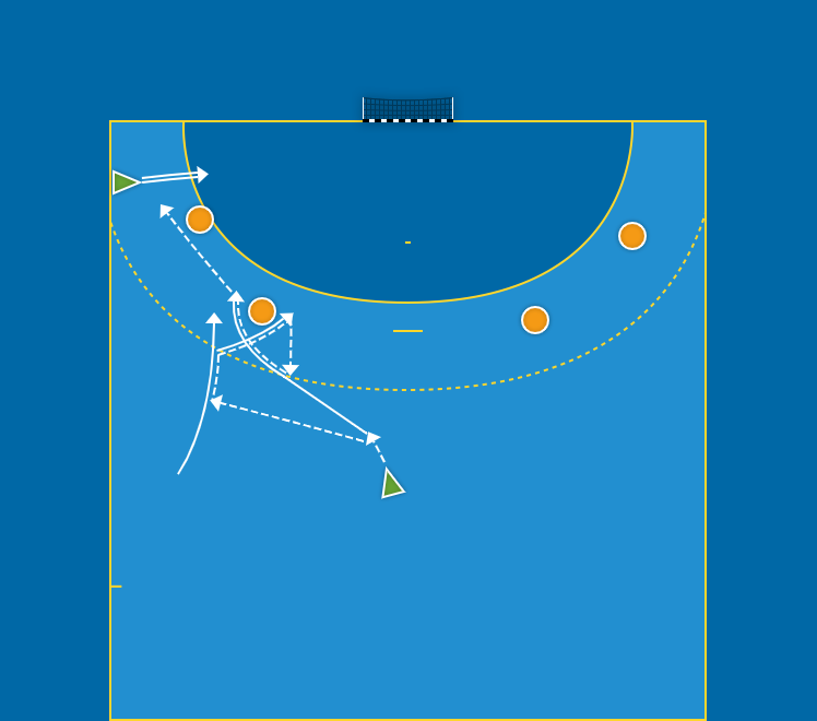 Samma som övning 5 men med 4 försvarare (1;a - 2:a - 2:a - 1:a)